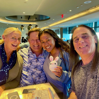 Here’s a snap of us at the San Francisco airport, the happy bunch with our bunny, ready to hop into our escapade.